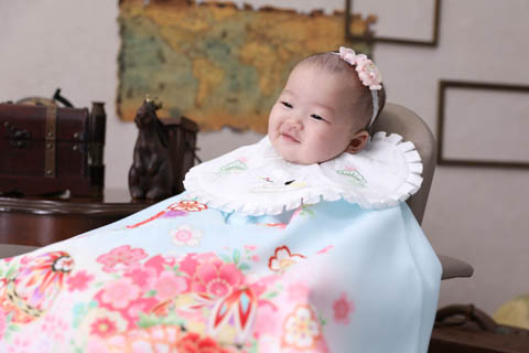色合いも男の子が濃い色味の掛け着を着用するのと対照的で、女の子は赤やピンク、淡い水色などの明るい色味が一般的で、可愛らしく華やかな印象です。