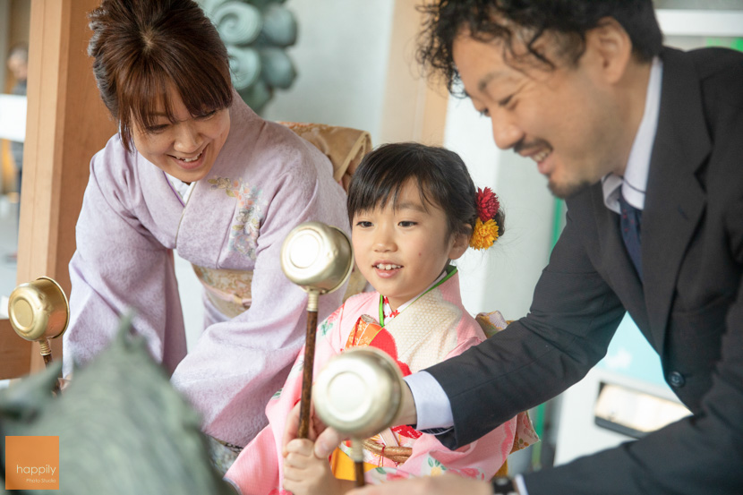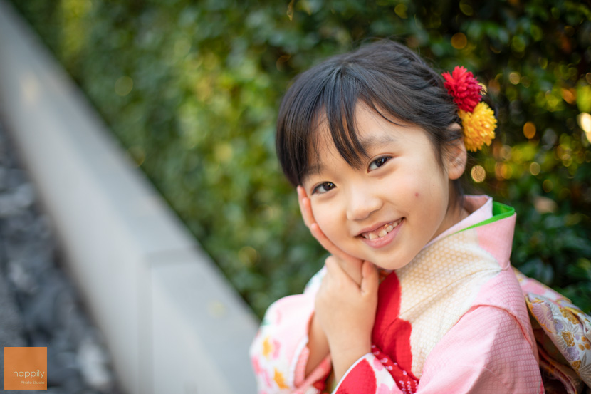 東京都中央区の水天宮にて、7歳の女の子の七五三撮影をさせていだきました。撮影は日曜日でしたが、日が傾き始めた午後の時間帯ということもあり、参拝客があまり多くない環境で撮影することができました。