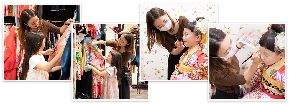 衣装が見つかりましたら、お着付けやへアセットはおまかせください!