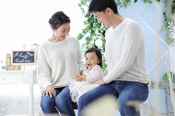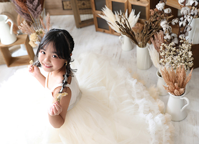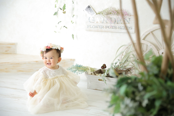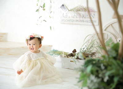 お子様のコンディションを確認しながら、カメラマンとコーディネーターが優しくリードし、様々な表情やポーズを引き出すことでバリエーション豊かなお写真を撮影します。