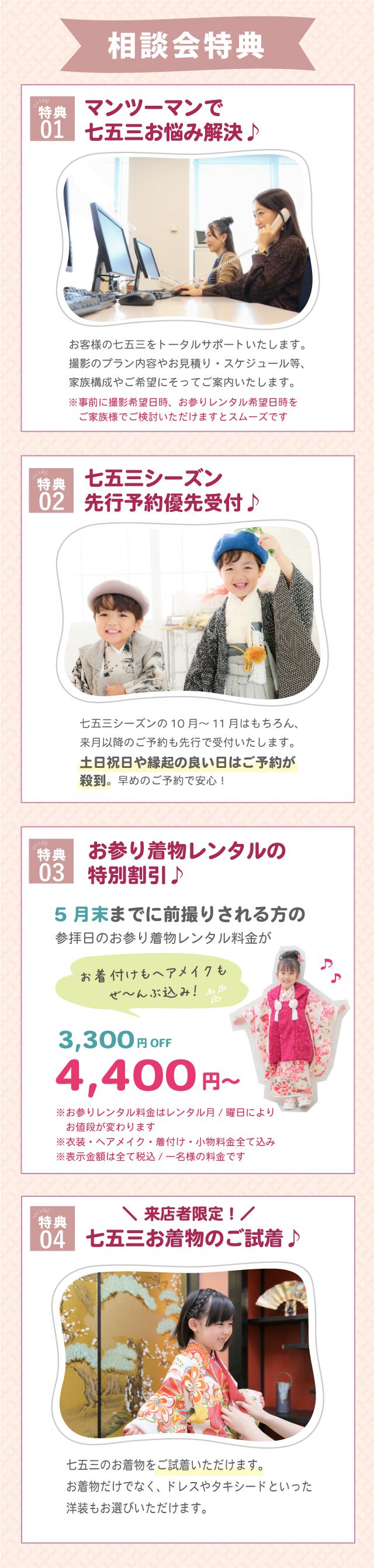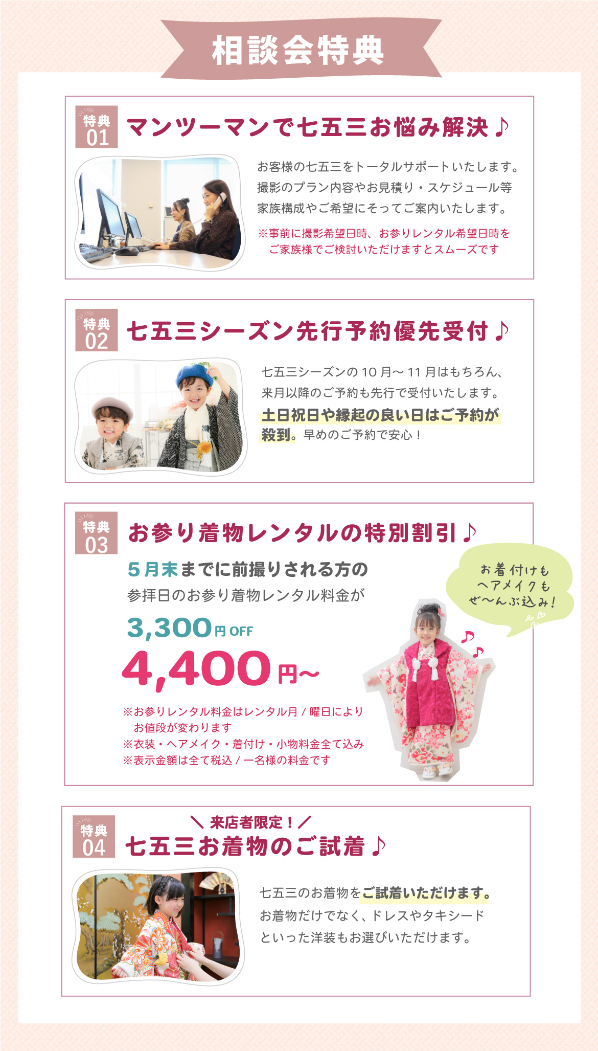 • ・七五三相談会へのご参加は1家族様1回限りとなります。