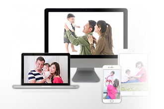 撮影データをhappilyのサーバーに保管し、スマホやタブレットでいつでも閲覧・ダウンロード可能