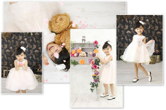 小学生までのお子様は簡単なアップスタイルのヘアアレンジとポイントメイクを施術します。