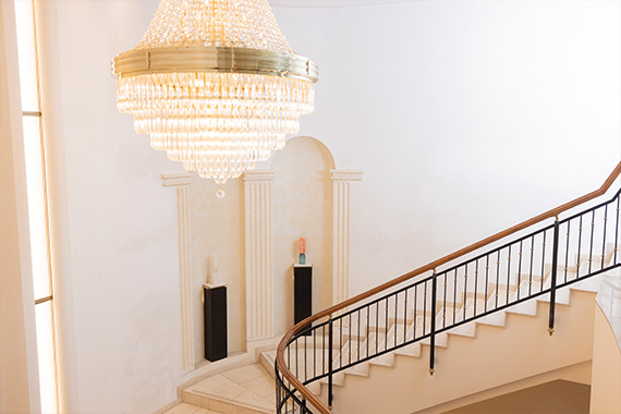 大きなシャンデリアや豪華な大階段など、ラグジュアリーな空間で