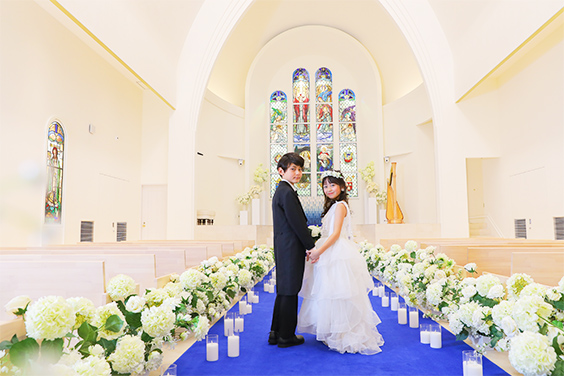 結婚式という特別な時にしか入ることのできない大聖堂チャペルで撮影ができるプランもご用意いたしました。