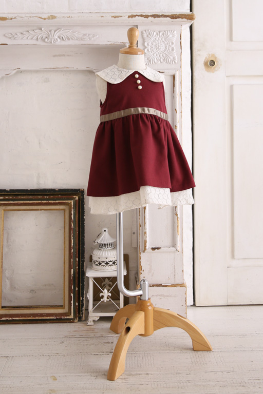 | 商品名 | 襟付きフロントボタンドレス (ボルドー) |