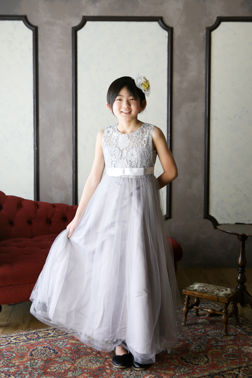 SILVER 【グレー胸元レース ロングドレス】【YG-140-013】140cm(横浜みなとみらい店)