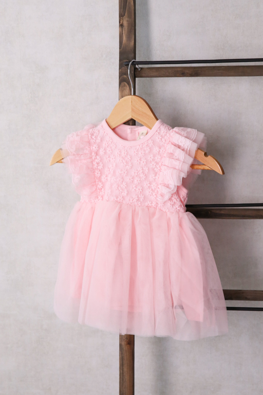 | 商品名 | 袖フリルフラワーピンクドレス |