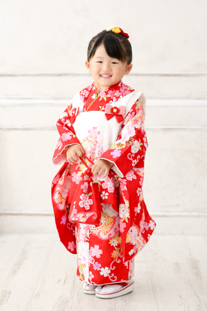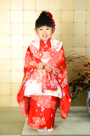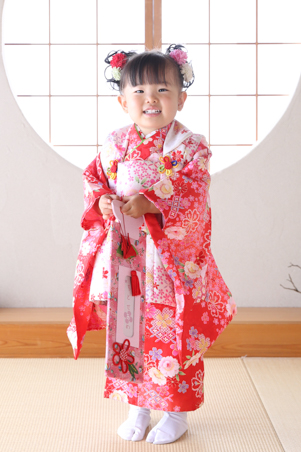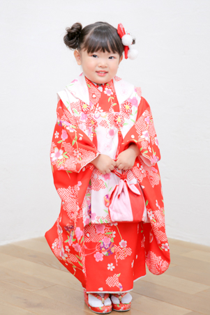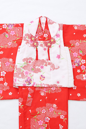 2位3歳女の子 / リボン被布赤花柄 / KKG0054