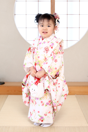 3位3歳女の子 / ホワイト被布紫花柄 / JKG0201