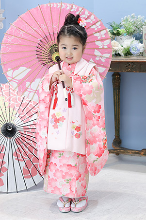 3位3歳女の子 / ピンク被布桜柄 / OKG0194