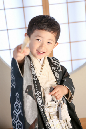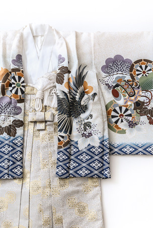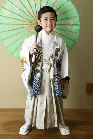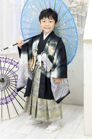 2位5歳男の子 / グレイッシュホワイト×黒羽織 / JKM1002