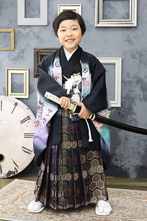 3位5歳男の子 / ブラックぼかし鷹羽織 / LKG1602