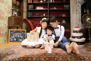 1歳のバースデーフォトは、ご家族での撮影も人気です。