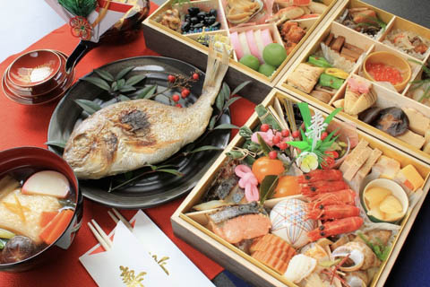 「長寿」の願いが込められたえび、「将来を見通せる」という意味のある蓮根、「マメに働く」ことを願った豆などが入っており、縁起が良いとされています。
