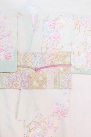 華やかにお祝いをしたい方は、このようなやや濃いめの色に、大きく柄が描かれた着物もおすすめです。
