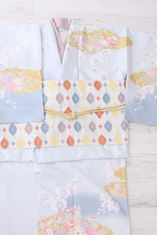 淡いカラーの着物は、どんな掛け着とも相性良く着ることができて、赤ちゃんを引き立ててくれます。