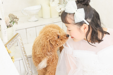 セルフ撮影だと、飼い主とわんちゃんが一緒に写真に収まるのは至難の業です。でも、写真館・フォトスタジオで撮影すれば、飼い主も一緒に写真に写ることができます。七五三やバースデー、入園・入学/卒園・卒業など、お子さまの記念日に合わせて愛犬も一緒に撮影するのも人気です。大切な家族の一員であるわんちゃんと、みんなで仲良く写真を撮りましょう。