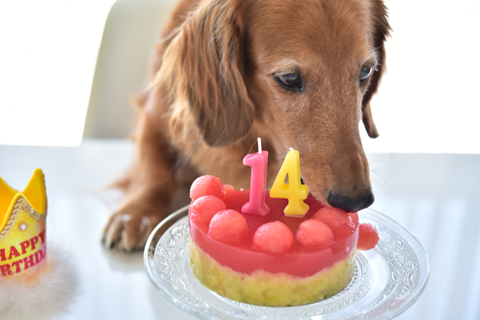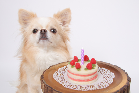 また、犬用の誕生日ケーキを用意すると記念日っぽく演出することができます。ケーキには、「おめでとう」などのプレートを添えると、さらに特別感がアップしますよ。