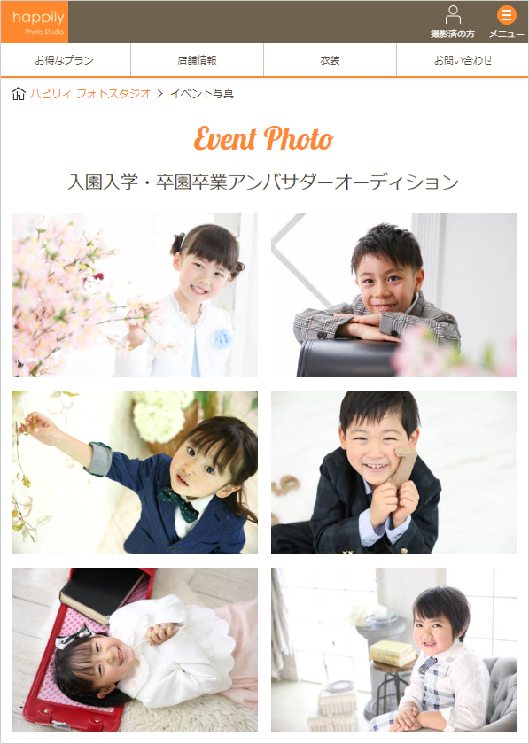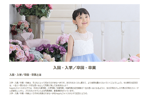 ギャラリーやプラン紹介など、happilyWEBサイトの入園入学・卒園卒業ページ全体でご活躍いただきます。