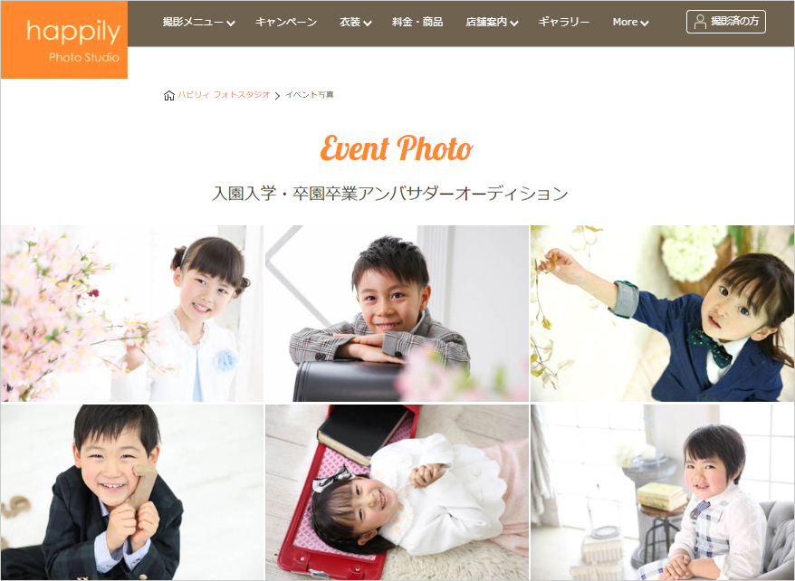 入園入学・卒園卒業アンバサダーオーディションにご参加いただいたお子様全員を、happilyフォトスタジオWEBサイトのイベントフォトにもれなく掲載いたします。