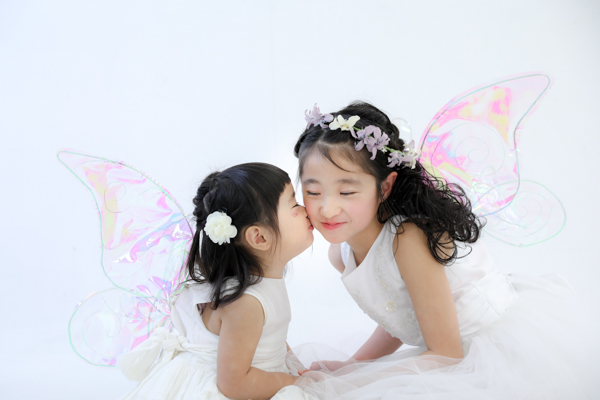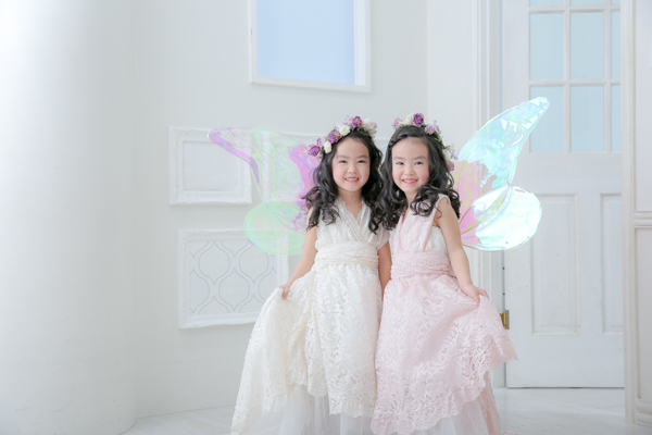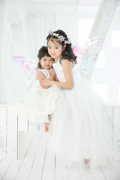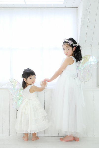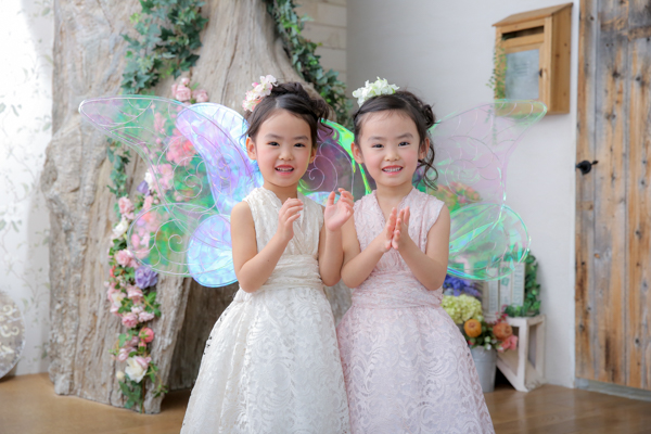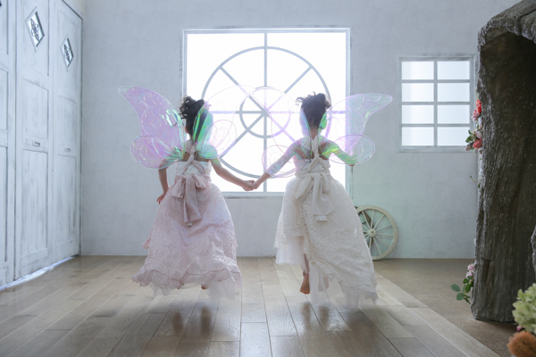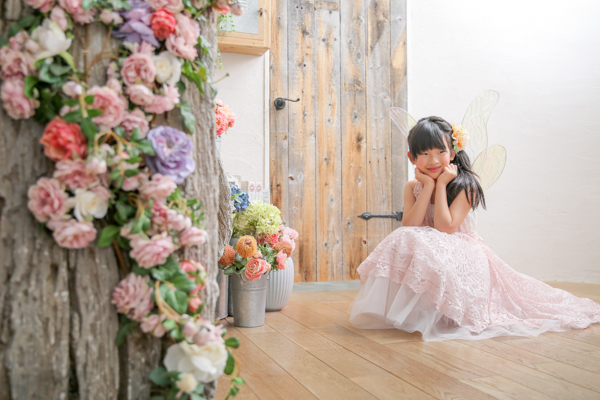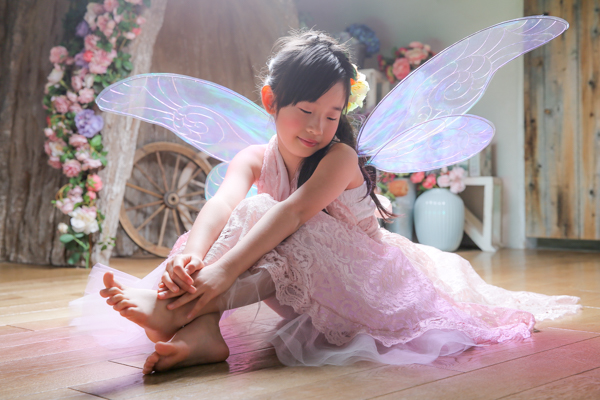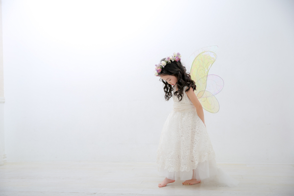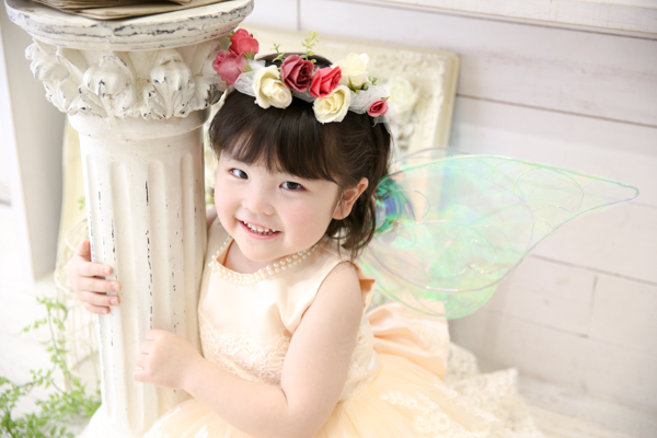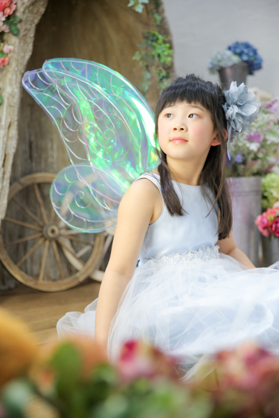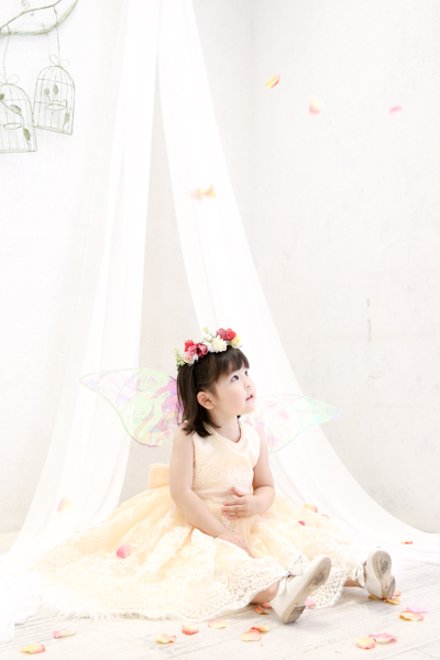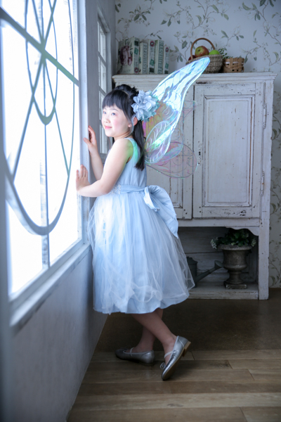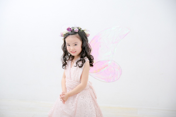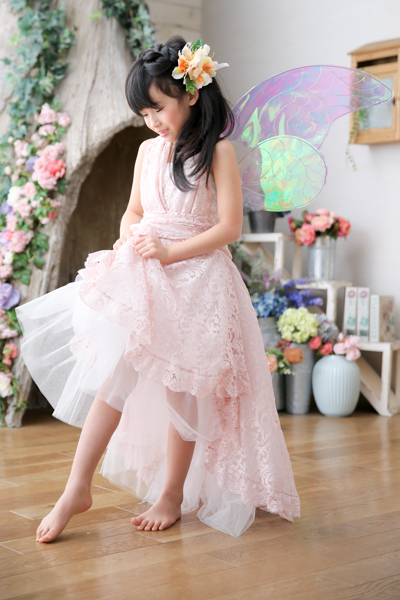 フェアリーの羽を付けhappilyの衣装(ドレス)で撮影