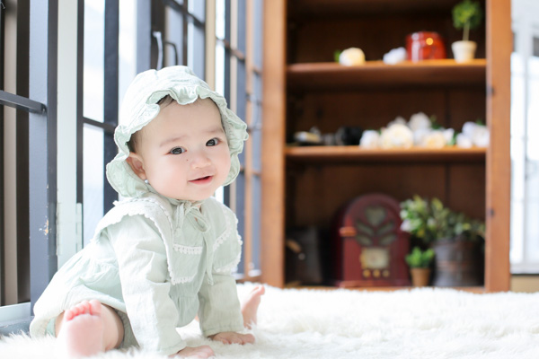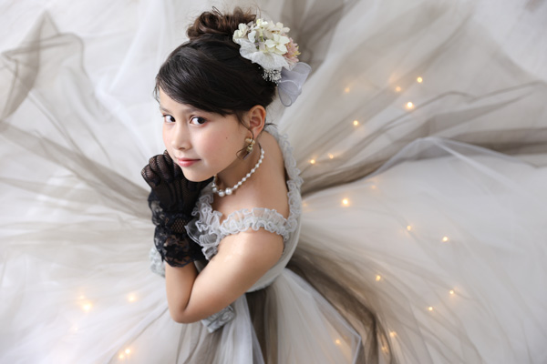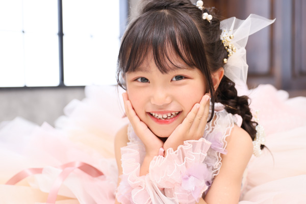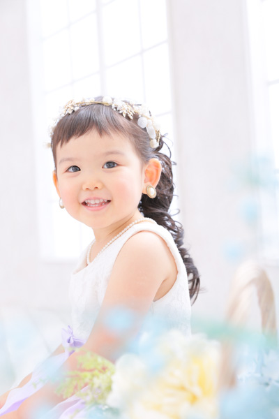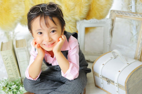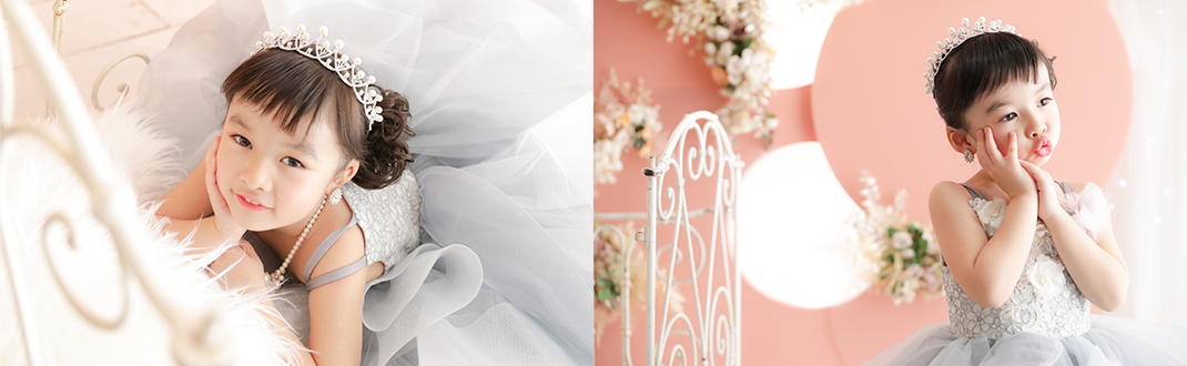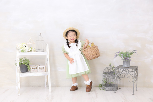 happilyフォトスタジオの衣装(洋装2着)を着て撮影。