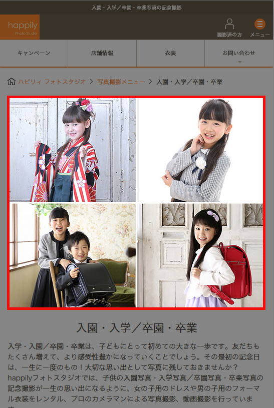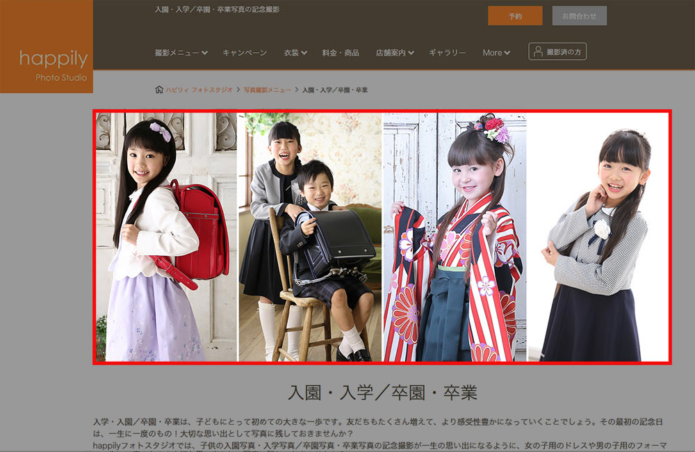 グランプリに選ばれたお子様は、ハピリィフォトスタジオWEBサイトの入学入園ページにてモデルとして活躍していただきます。