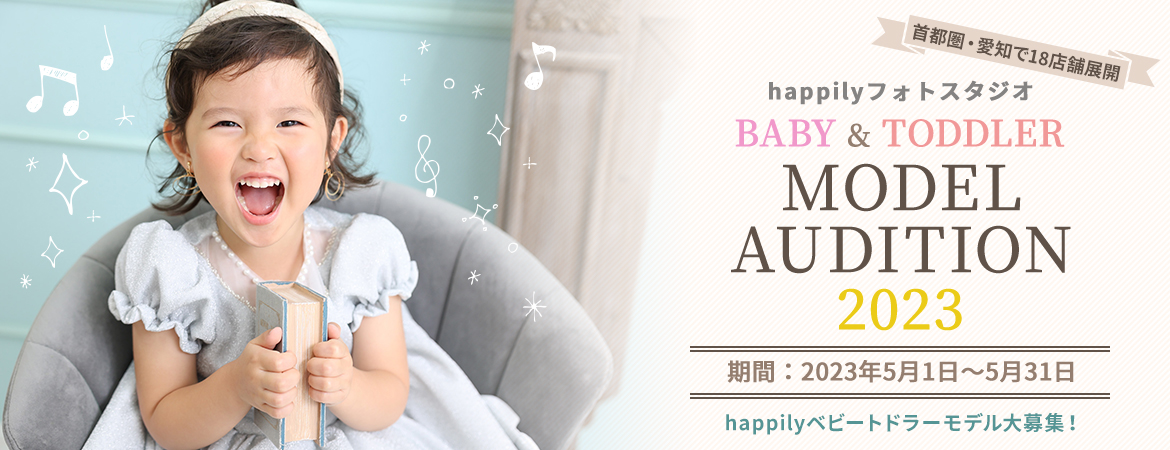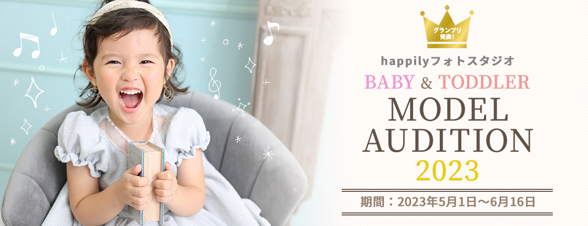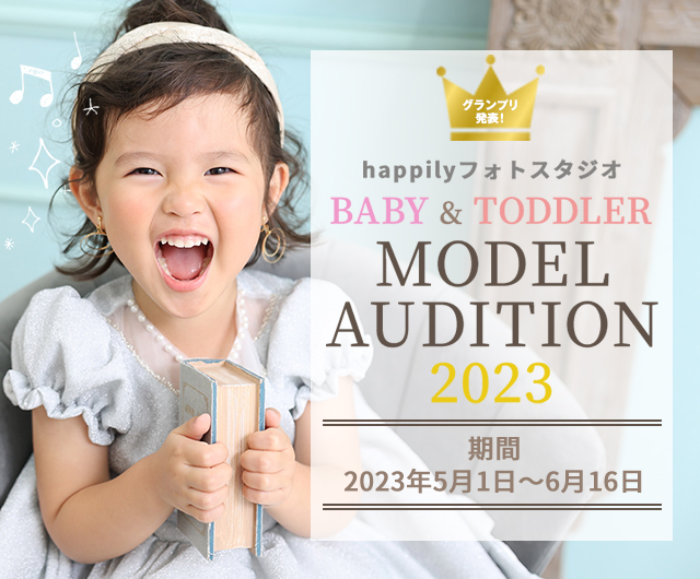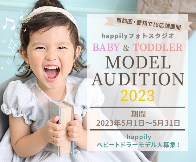 ベビー・トドラー モデルオーディションに参加されたお子様全員をhappilyフォトスタジオWEBサイトのイベントフォトにもれなく掲載いたします。