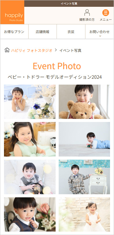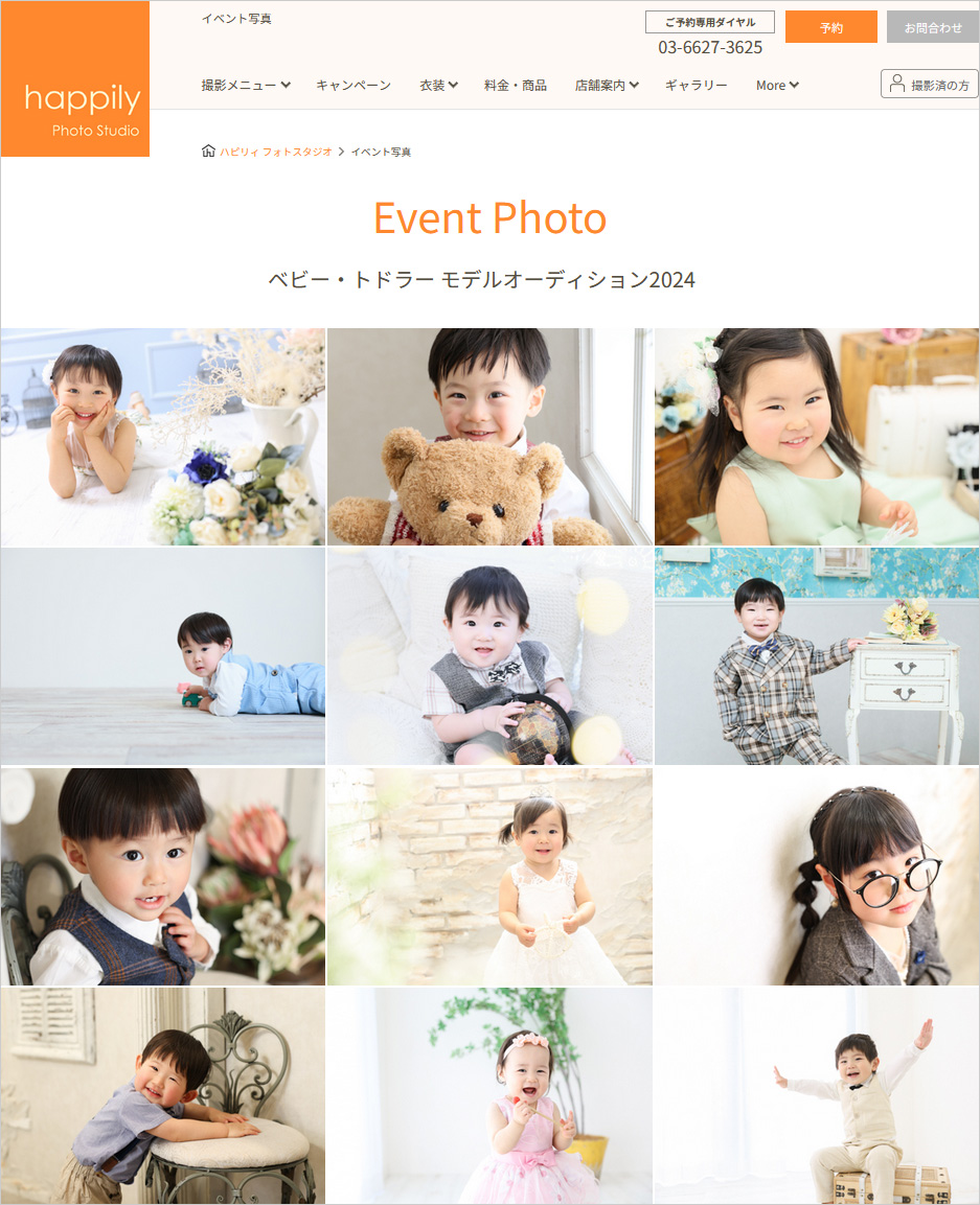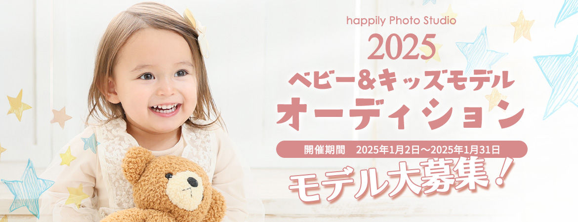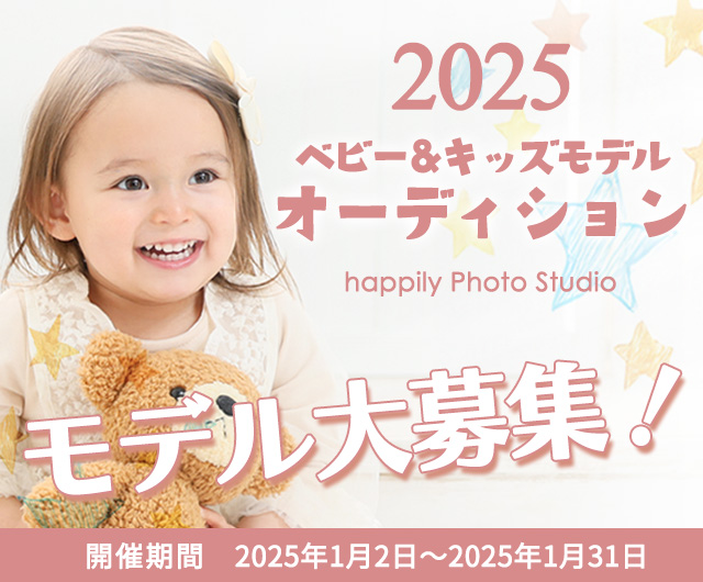 ベビー&キッズ モデルオーディションにご参加いただいたお子様全員をhappilyフォトスタジオWEBサイトのイベントフォトにもれなく掲載いたします。