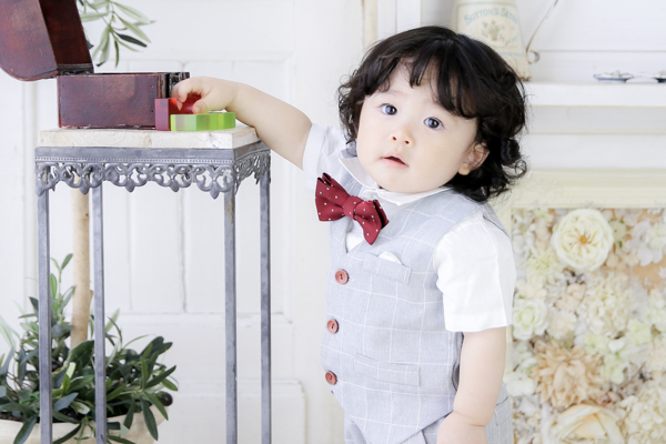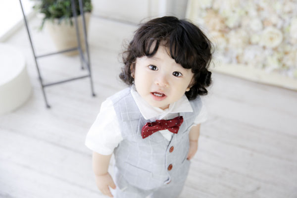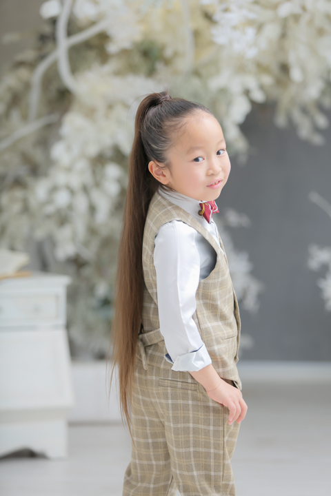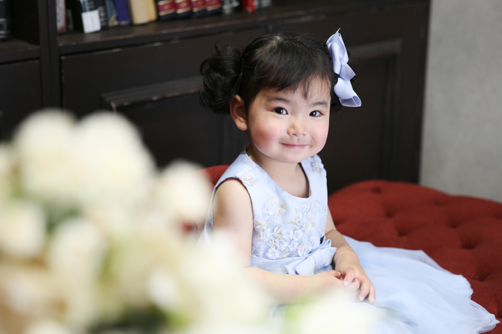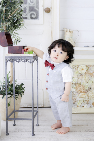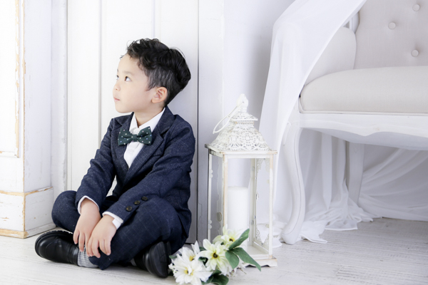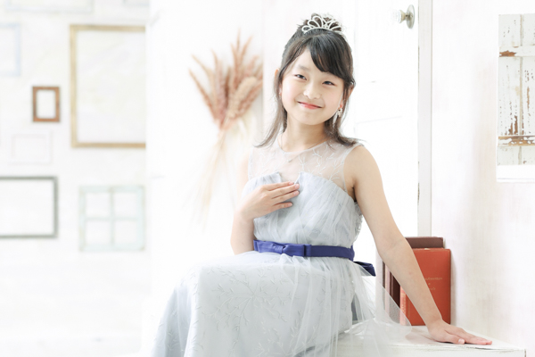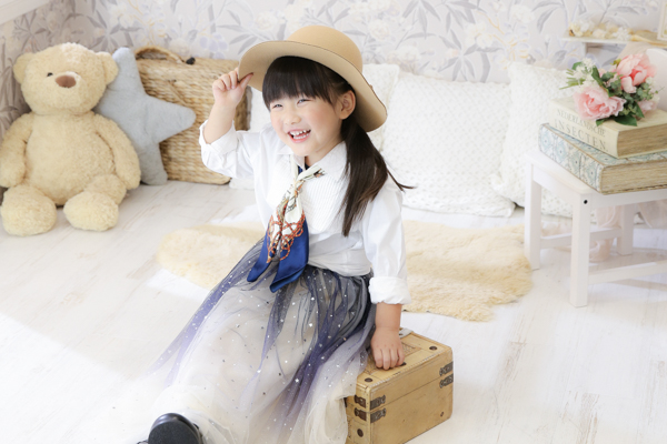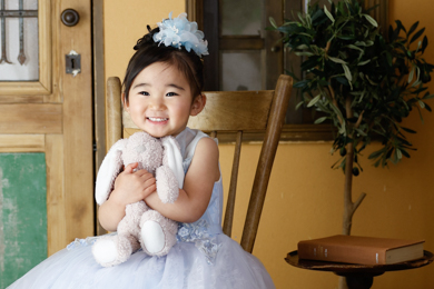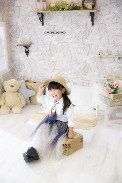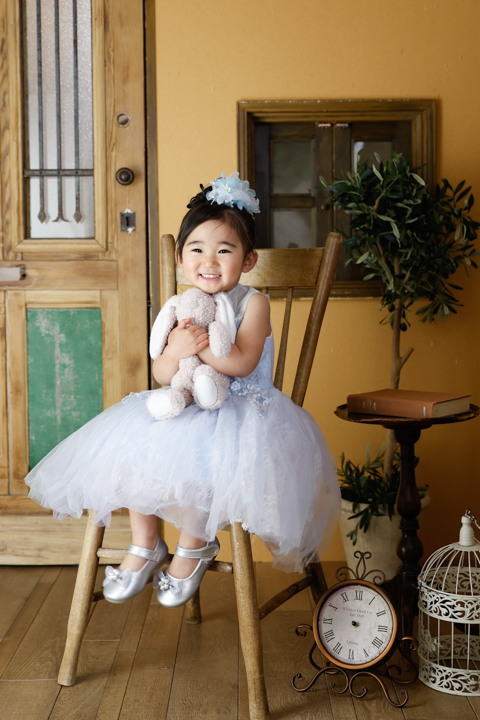 happilyフォトスタジオの衣装(洋装2着)を着て撮影。