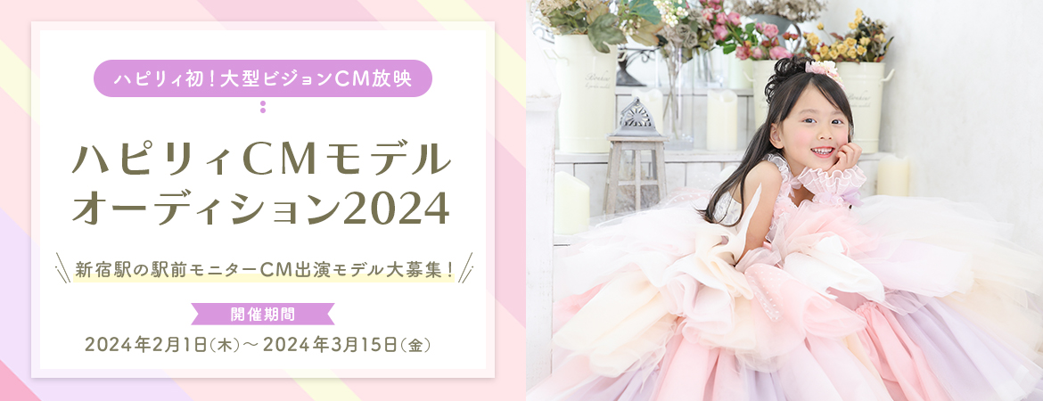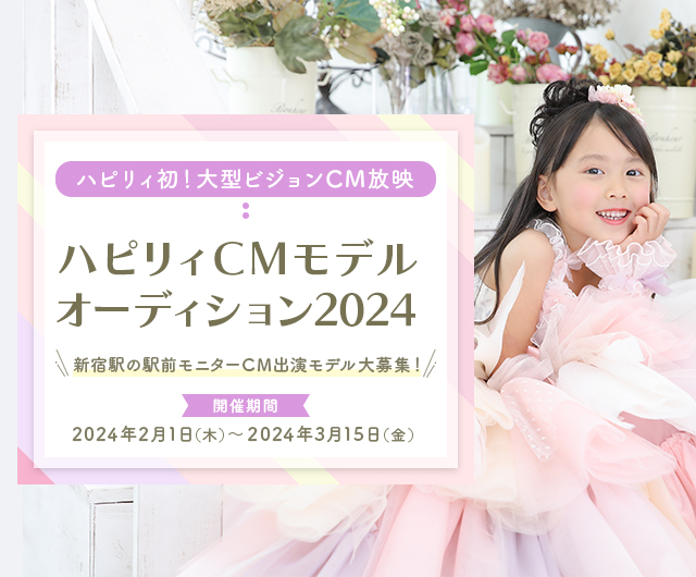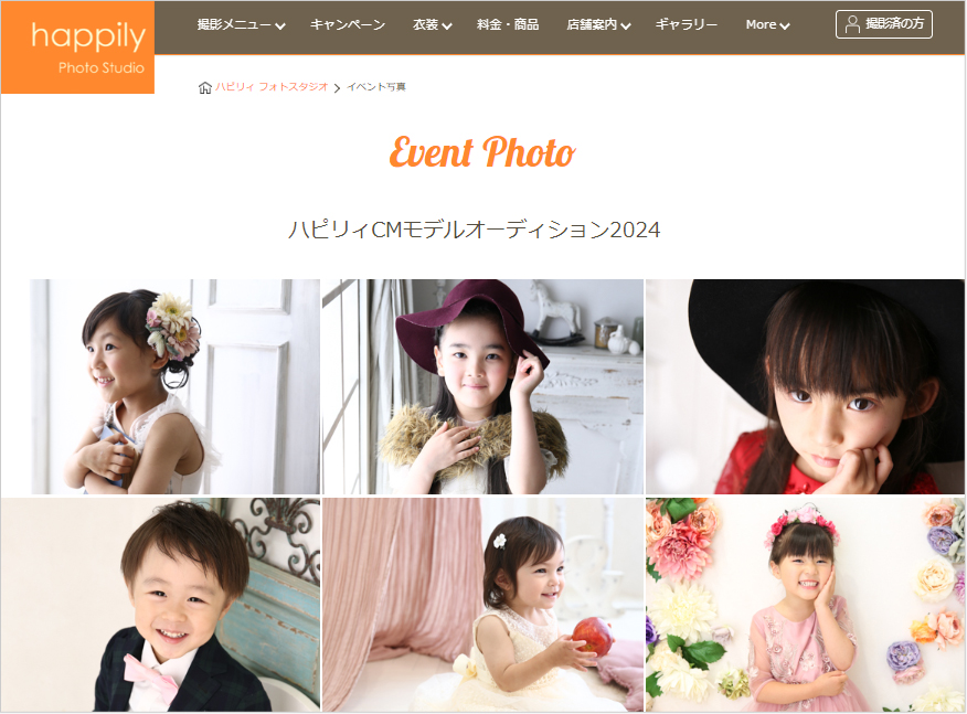 ハピリィCMモデルオーディションにご参加いただいたお子様全員を、happilyフォトスタジオWEBサイトのイベントフォトにもれなく掲載いたします。