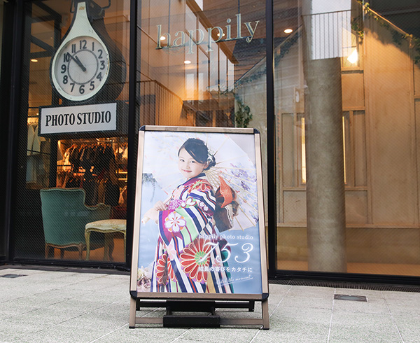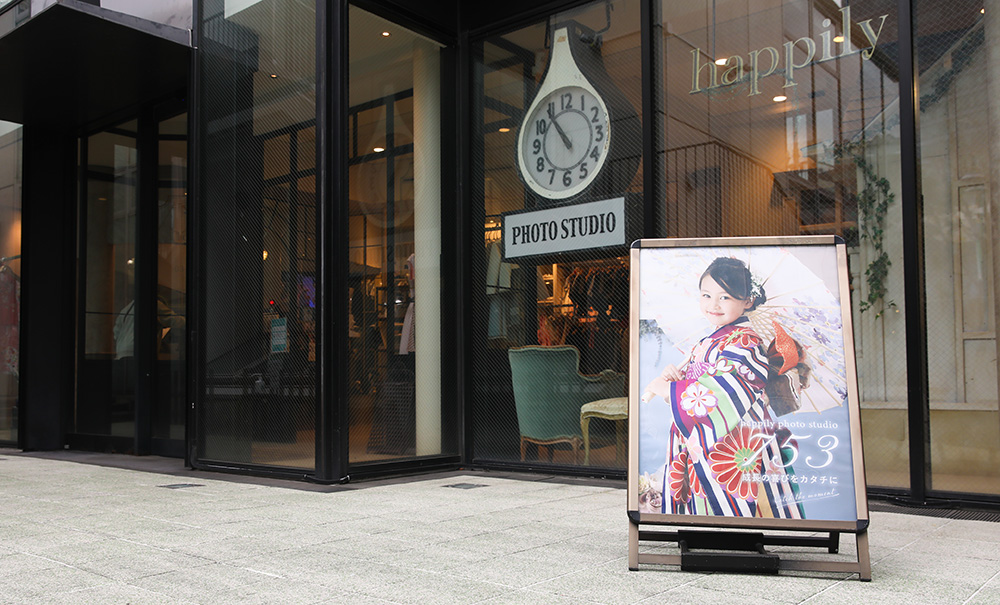 東京・神奈川・愛知県で7店舗を運営するhappilyフォトスタジオ各店頭の大型ポスターに掲載されます。
