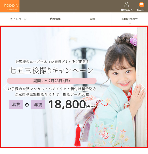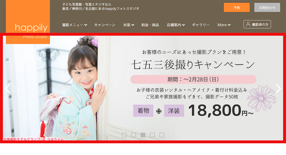 happilyフォトスタジオWEBサイトのトップやキャンペーンページなどに掲載されます。