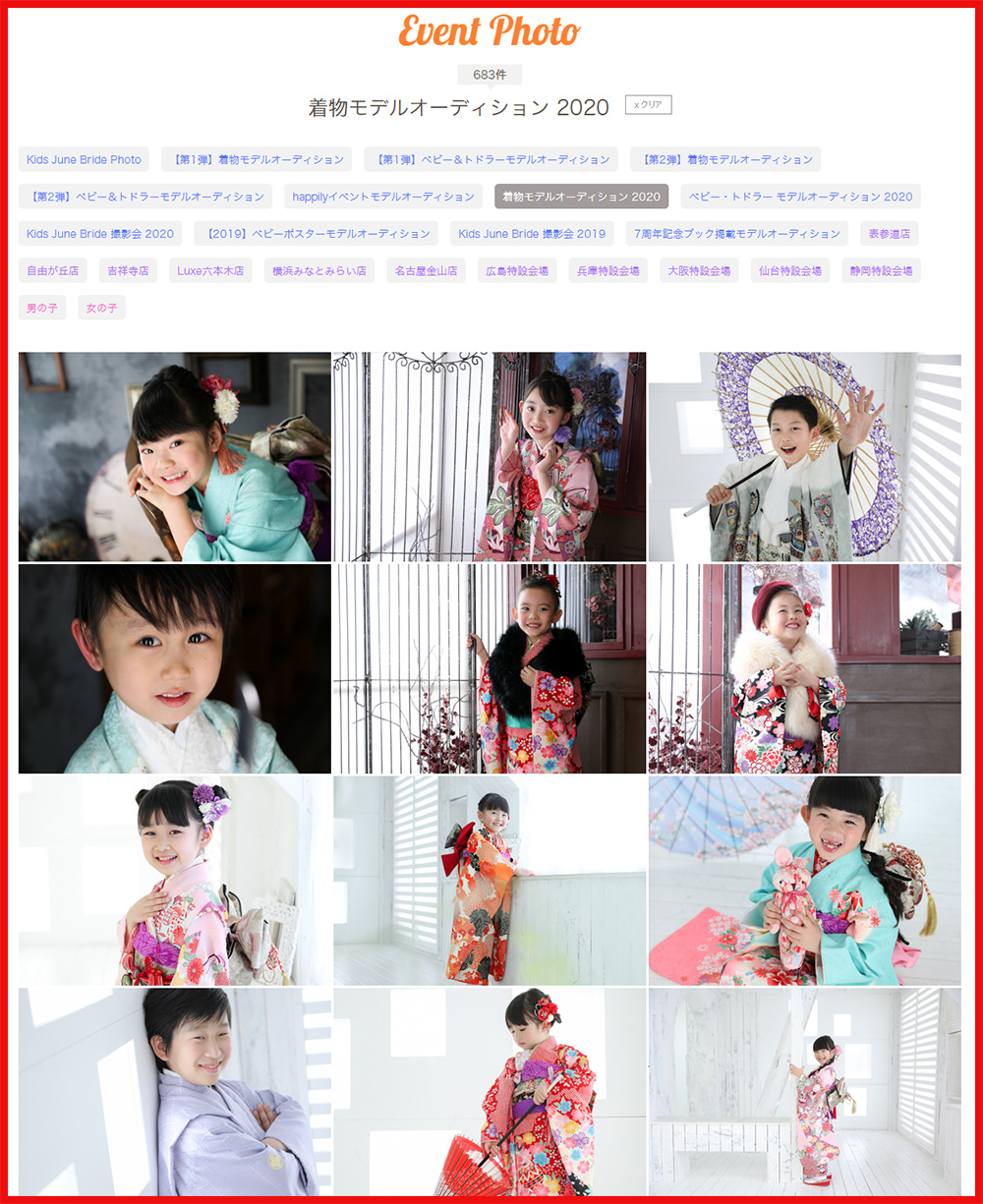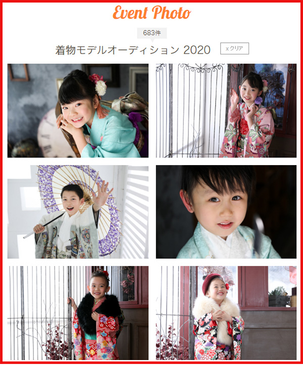 happilyフォトスタジオ着物モデルオーディション2021に参加されたお子様全員をhappilyフォトスタジオWEBサイトのイベントフォトにもれなく掲載いたします。