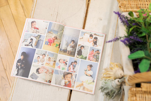 当日撮影したお子様のお写真のみを使用した、カタログ撮影限定のフォトブック。