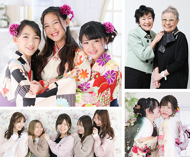 撮影時間は約50分間。グループでの撮影はもちろん、お一人お一人の撮影も承ります!