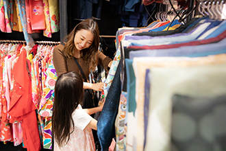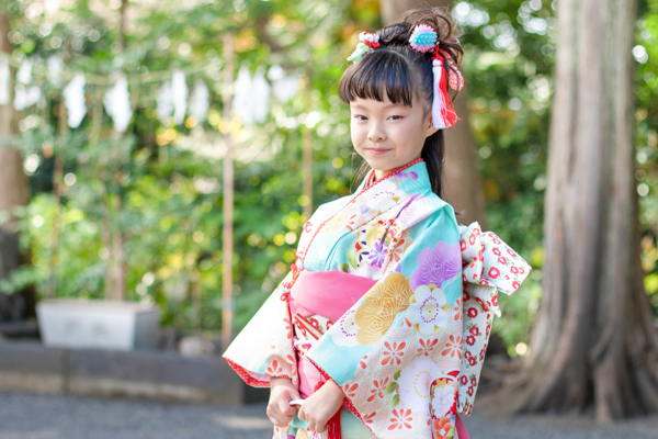 お参り前にhappilyフォトスタジオの店舗にお立ち寄りいただき、着物選び・ヘアアレンジ・メイク・着付けをしてそのまま神社へお参りに行くことができます。