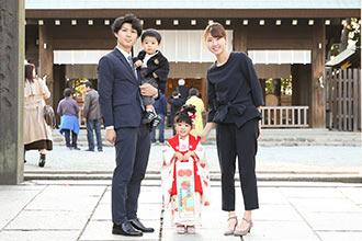 お客様より「お参り中の写真も記念に残したい!」というご要望を多くいただき、happilyカメラマンがお客様の七五三お参りを神社にて撮影する七五三出張撮影サービスを行っております。