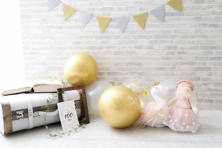 気になるボックスの中身は、ディスプレイに使えるバルーンや月齢カードの他にも身に着けられるアイテムも入っています。