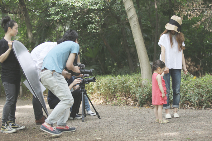 今回は、風を感じながら公園での撮影と室内での撮影を行い、細かい動きの確認や演出・演技指導もありました。