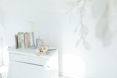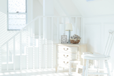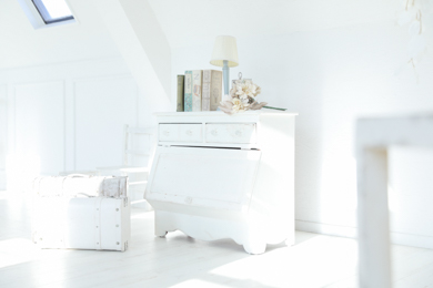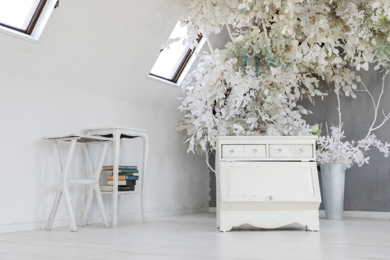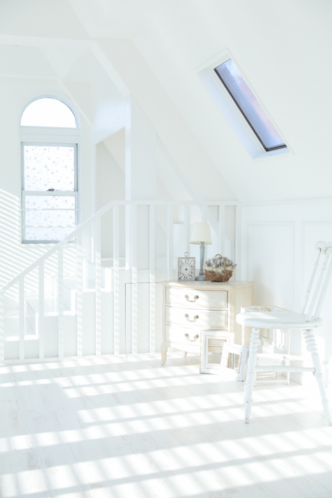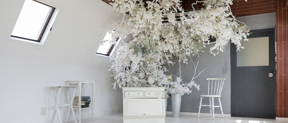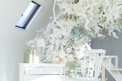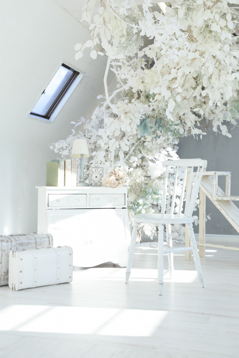 スタイリッシュに白で統一されつつも、どこか子供部屋を連想するお部屋。 大きな白い木が特徴的でシックで大人っぽい演出も可能です。