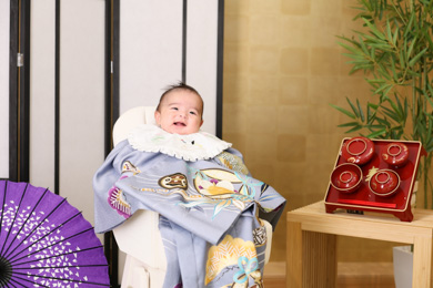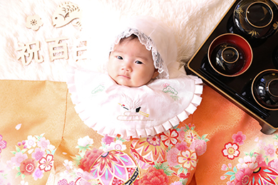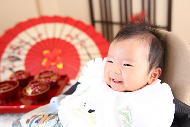 お食い初め・百日のお祝いという赤ちゃんの記念日をhappilyフォトスタジオでどうぞ。