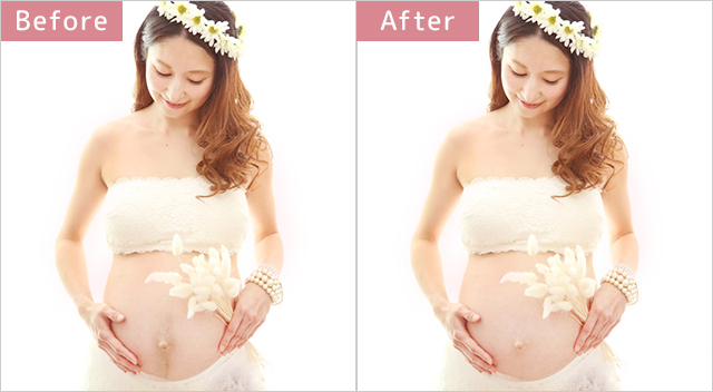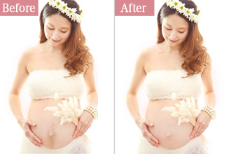 お気に入りの写真のお腹の妊娠線・産毛を修正いたします。