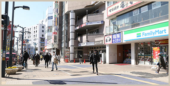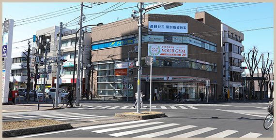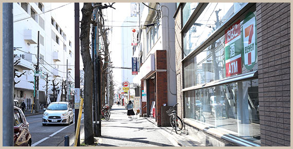【7】フィットネスジムがあるビルを左に曲がりドコモショップを直進すると、イオンの真向かいにお店があります。