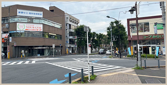 【6】ひたすら直進すると左手にフィットネスジム、右手にコープみらいがある交差点がでてきます。